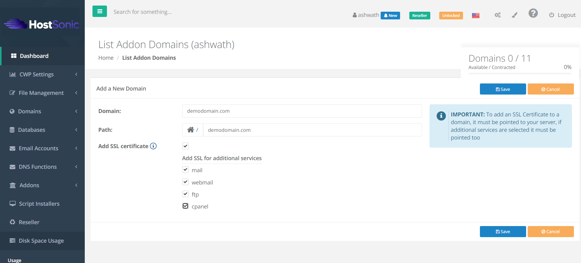 Login to our ultra-secure HostSonic account and insert your domain name. You can add unlimited domains & unlimited websites.